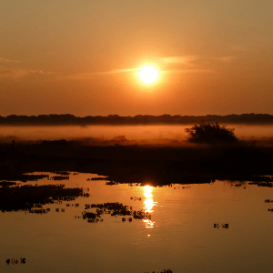Alvorecer com saída de barco a remo, com duração aproximada de 01 hora e 30 minutos, para a apreciação do deslumbrante espetáculo do despertar da natureza no Pantanal.